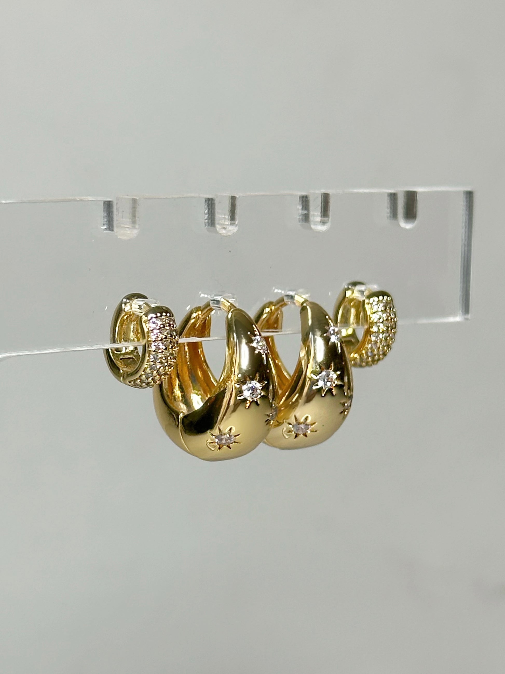 This gorgeous set captures the heart of the holidays with its warm gold tones and sparkling details. The star-studded huggies bring a playful, festive glow, while the pavé teardrop hoops add refined brilliance that complements any look. Designed for the woman who appreciates pieces that feel both luxurious and wearable, this set transitions effortlessly from festive celebrations to everyday style. It’s a joyful reminder to shine a little brighter this season.